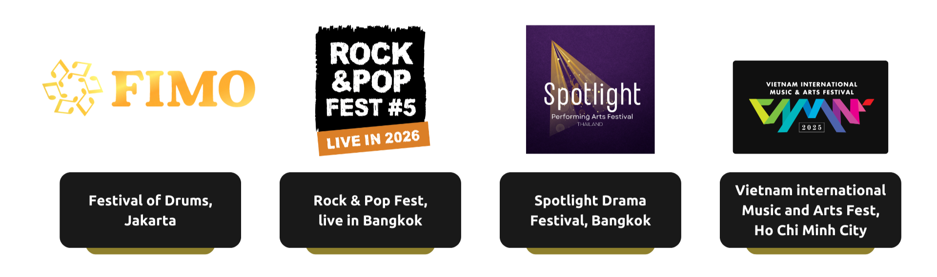 At the juries’ discretion, there will be Special Prizes awarded to the top performer in the music and drama categories. The special prize winners will receive a free participation entry* to one of the following international music / drama festivals: